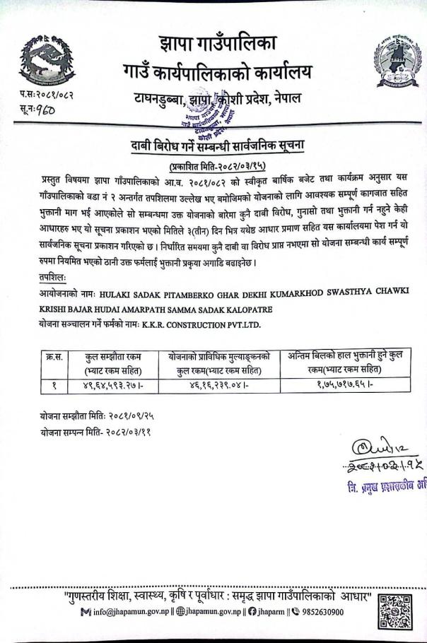 दाबी बिरोध गर्ने सम्बन्धी सार्वजनिक सूचना ||