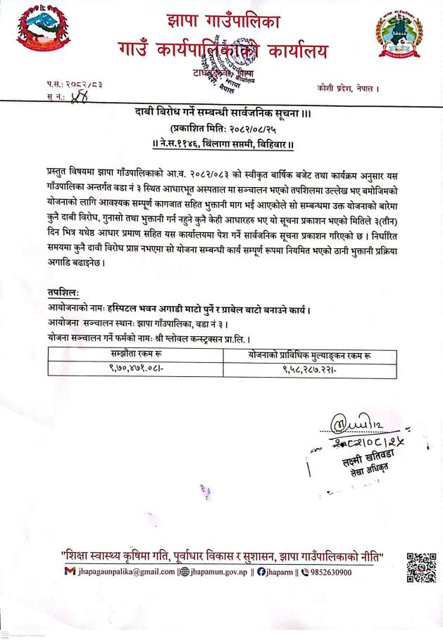 » दाबी बिरोध गर्ने सम्बन्धी सार्वजनिक सूचना ||