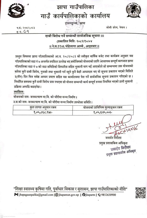 » दाबी बिरोध गर्ने सम्बन्धी सार्वजनिक सूचना ||