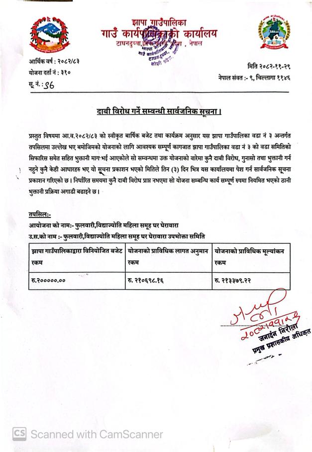 दावी विरोध गर्ने सम्बनधी सार्वजनिक सूचना ||