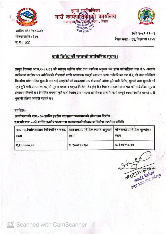 दावी विरोध गर्ने सम्बनधी सार्वजनिक सूचना ||