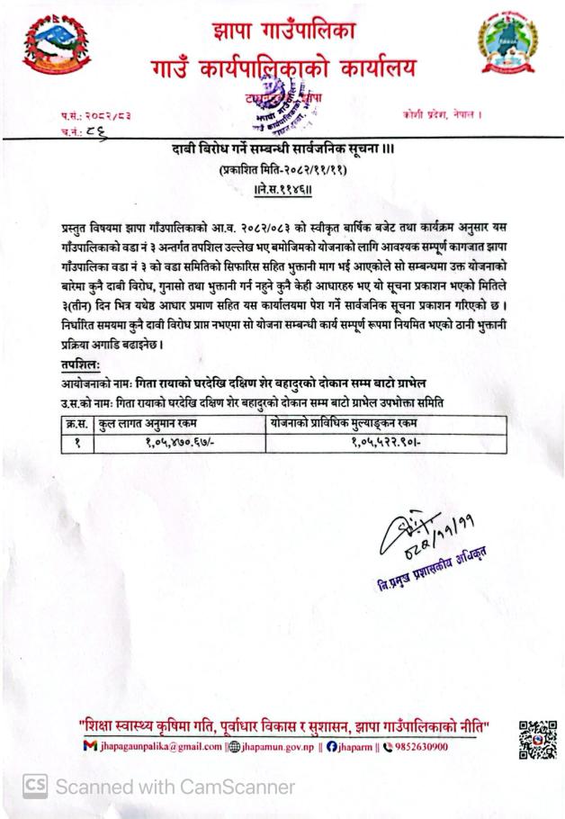 दाबी बिरोध गर्ने सम्बन्धी सूचना ||