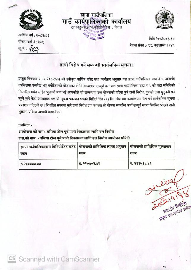 दावी विरोध गर्ने सम्बन्धी सार्वजनिक सूचना ||
