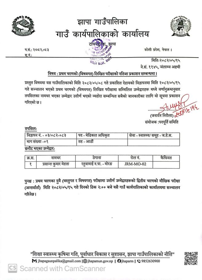 पदः मेडिकल अधिकृतको लिखित परिक्षाको नतिजा प्रकाशन तथा मौखिक परिक्षा (अन्तरवार्ता) सम्बन्धी सूचना ||
