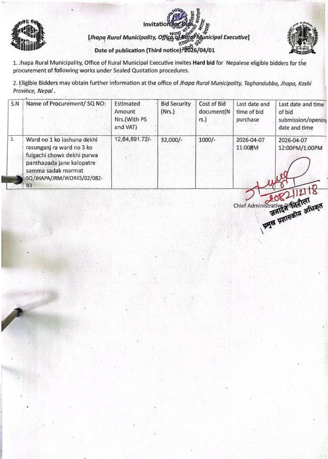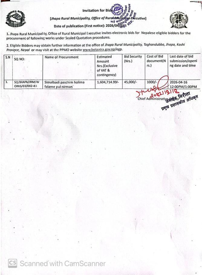 बोलपत्र आह्वान सम्बन्धी सूचना ||