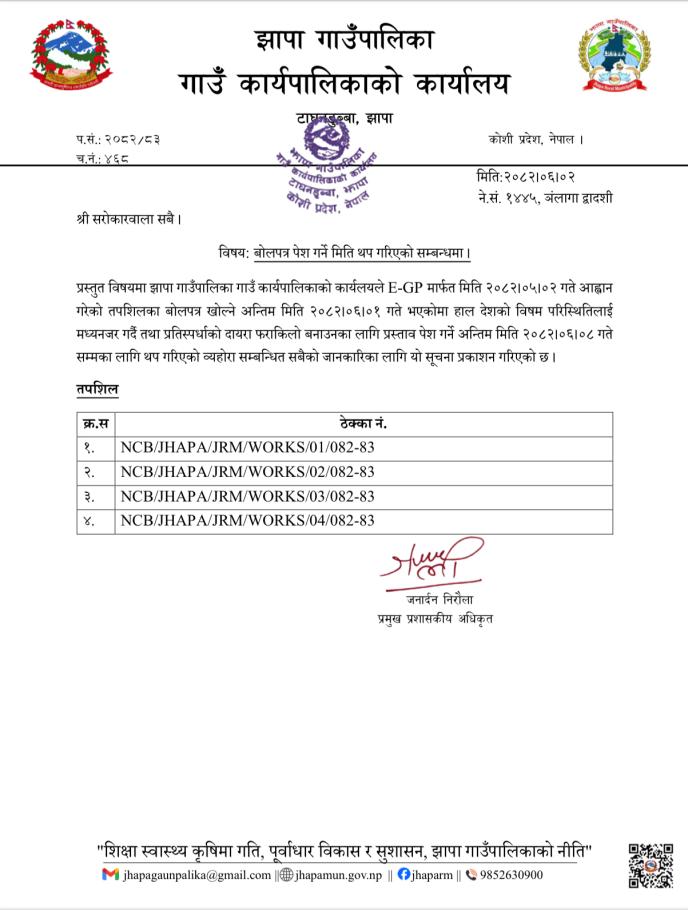 बोलपत्र पेश गर्ने मिति थप गरिएको सम्बन्धमा ||