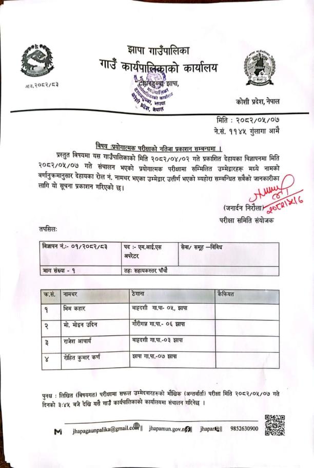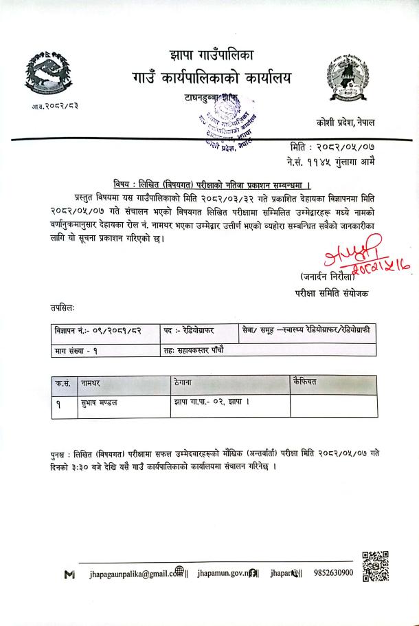 लिखत (विषयगत) परीक्षाको नतिजा सम्बन्धमा || पद : रेडियोग्राफर, स्वास्थ्य नर्सीङ
