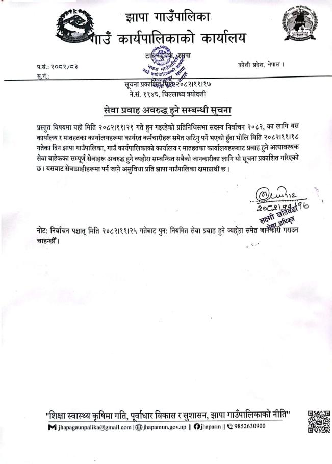 » सेवा प्रवाह अवरूद्ध हुने सम्बन्धी सूचना ||