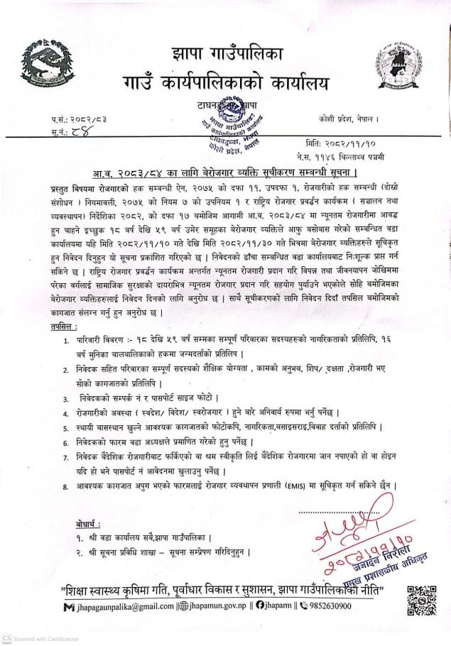 आ.व २०८३/८४ का लागि बेरोजगार व्याक्ति सूचीकरण सम्बन्धी सूचना |
