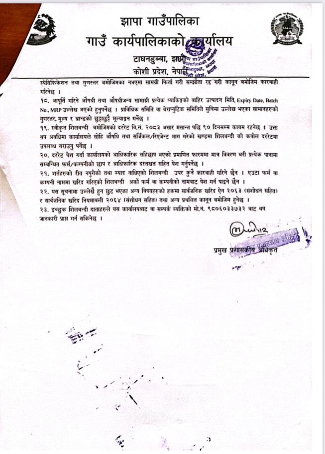 बोलपत्र पेश गर्ने मिति थप गरिएको सम्बन्धमा ||