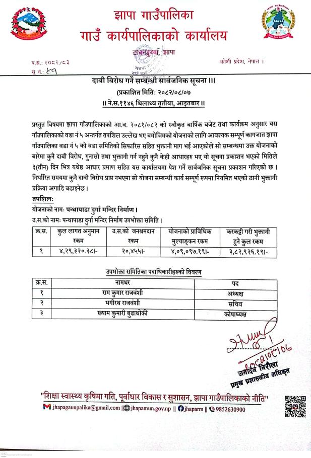 » दाबी बिरोध गर्ने सम्बन्धी सार्वजनिक सूचना ||