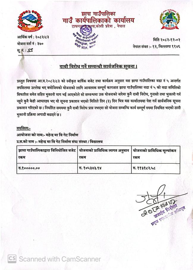दावी विरोध गर्ने सम्बनधी सार्वजनिक सूचना ||
