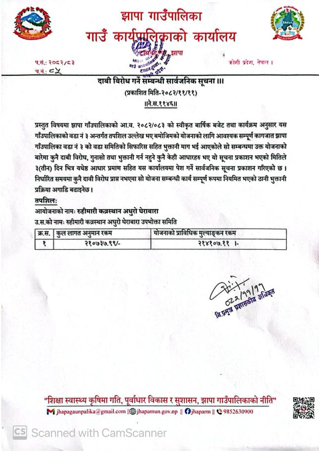 दाबी बिरोध गर्ने सम्बन्धी सूचना ||