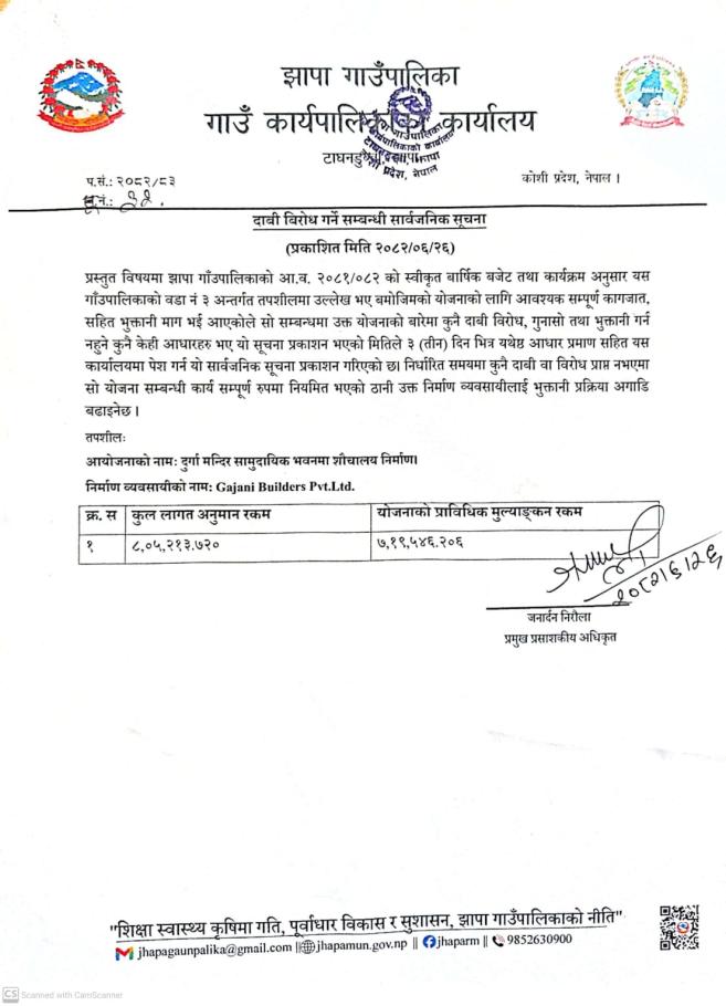 दावी बिरोध गर्ने सम्बन्धी सार्वजनिक सूचना ||