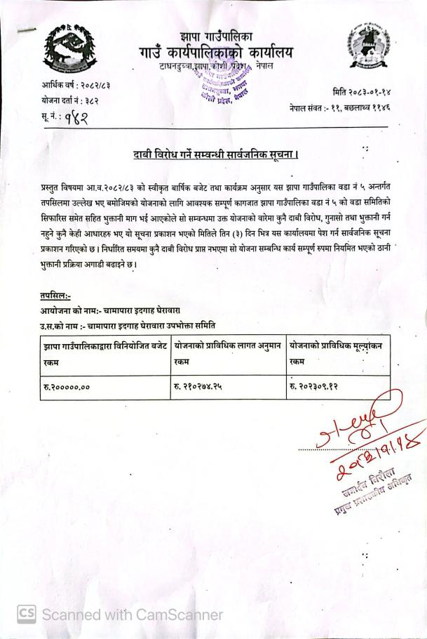 दावी विरोध गर्ने सम्बन्धी सार्वजनिक सूचना ||
