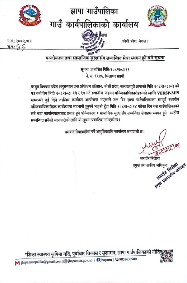 » पञ्जीकरण तथा सामाजिक सुरक्षा सम्बन्धित सेवा स्थगन हुने बारे सूचना ||