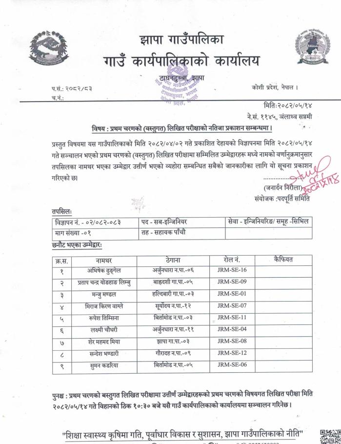 » पदः सब-ईन्जिनियरको प्रथम चरणको लिखित(बस्तुगत) परिक्षाको नतिजा प्रकाशन सम्बन्धमा।
