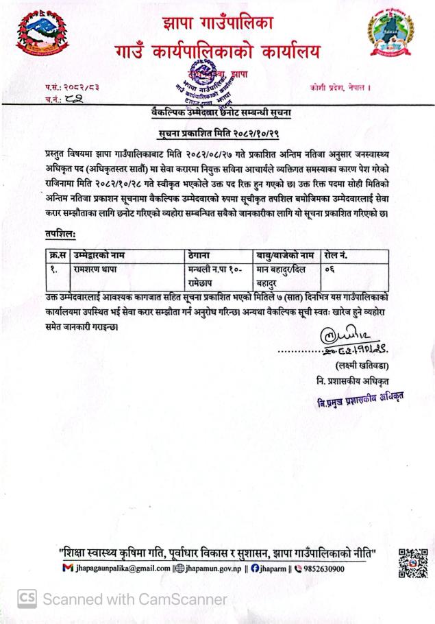 » बैकल्पिक उम्मेद्वार छनोट सम्बन्धी सूचना ||