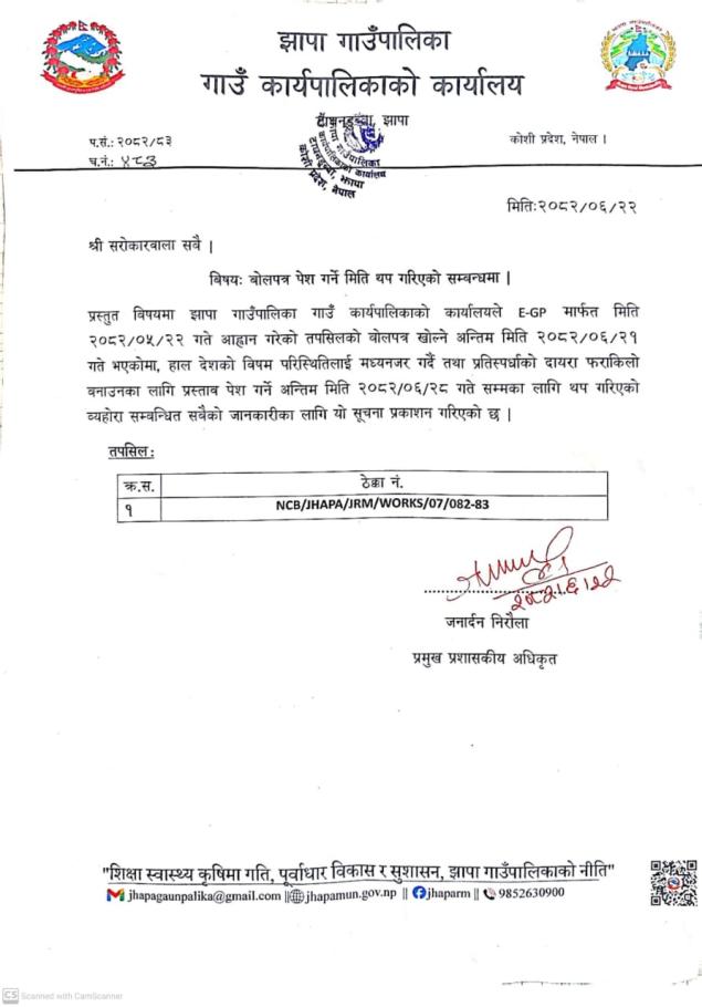 बोलपत्र पेश गर्ने मिति थप गरिएको सम्बन्धमा ||